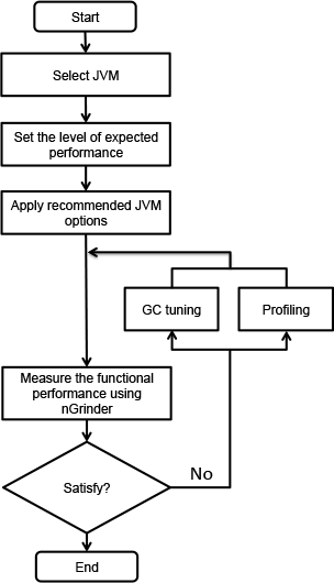 图1中的性能优化流程图适用于包括Swing应用在内的几乎所有Java应用。尽管如此,这个流程并不太适用于我们NHN公司为网络服务编写服务器应用的场景。下 图2 是针对NHN公司并基于 图1 制定的一个简化的处理流程。
