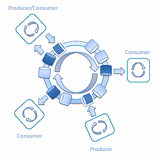 另外, 当同一个线程可以用来消费消息,处理它们并向环中返回结果时,通过混合生产者和消费者,Railway也能用来处理复杂的情况: