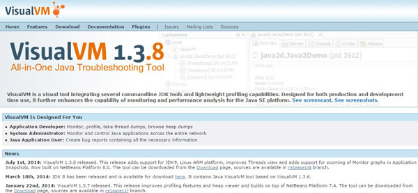 VisualVM是一个集多功能于一身的Java故障排除工具。你可以使用VisualVM整合多命令行JDK工具。此轻便的工具有着惊人的分析能力。你可以在各种技术,如jvmstat、JMX和Serviceability Agent(SA)中使用VisualVM。VisualVM最出名的是附加了API,以获得更多的数据,以及自动使用更快捷。