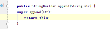 面第一张图是StringBuffer中append()方法的实现,第二张图为StringBuilder对append()的实现。区别应该一目了然,StringBuffer在方法前加了一个synchronized修饰,起到同步的作用,可以在多线程环境使用。为此付出的代价就是降低了执行效率。因此,如果在多线程环境可以使用StringBuffer进行字符串连接操作,单线程环境使用StringBuilder,它的效率更高。