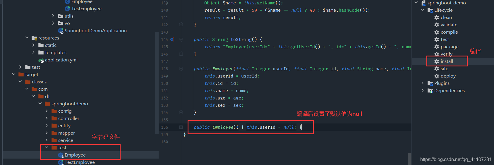 userid用final修饰,此时当前类编译不会报错,我们使用idea编译一下查看结果:
