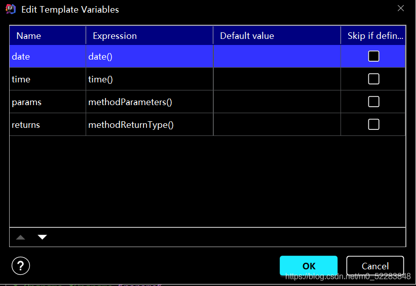 .–》点击edit variables,设置自己想要的显示的参数,date日期,time时间,params返回参数,returns返回类型。