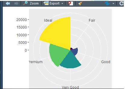 bar<-ggplot(data=diamonds)+ geom_bar(mapping = aes(x=cut,fill=cut),show.legend = f,width = 1) #不要标签+极坐标 bar+labs(x=null,y=null)+coord_polar()