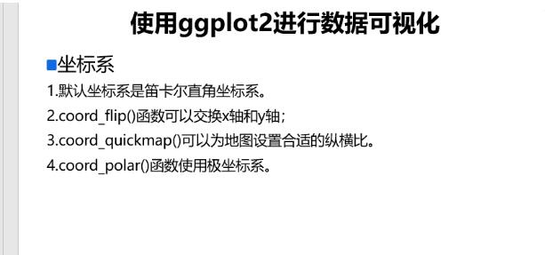 这部分是关于坐标的选取和变换,ggplot2默认的是笛卡尔坐标系,我们也可以使用极坐标系,用coord_polar()将笛卡尔坐标系转化为极坐标系