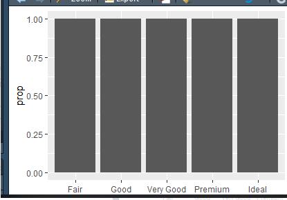 ggplot(data=diamonds)+ geom_bar(mapping = aes(x=cut,y=..prop..,group=1))