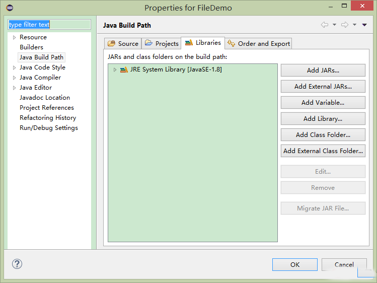libraries选项:可以添加、编辑、移除当前项目所依赖的库文件。