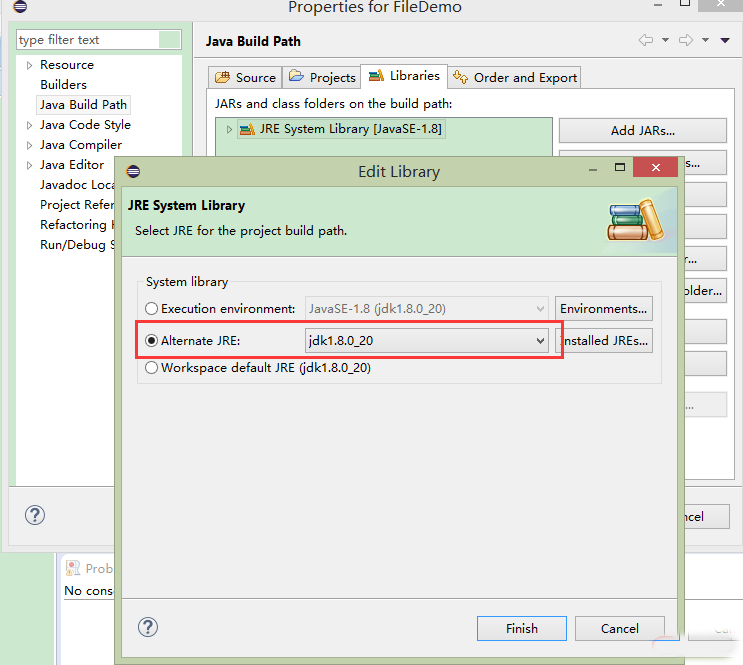 右键点击项目—>build path—>configure build path