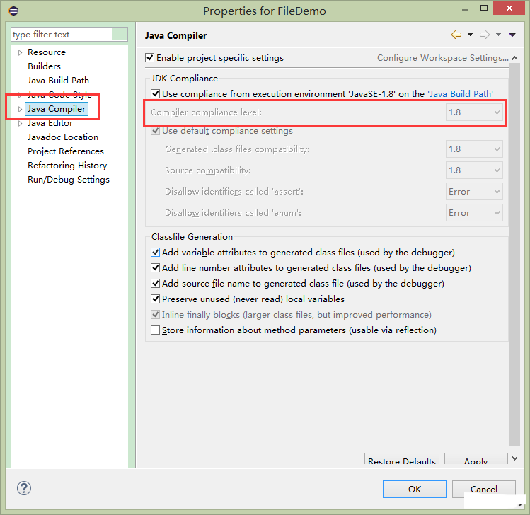 2.在更改了工程的系统库的版本后,如果是高版本的改为低版本的,要更改jdk的兼容性选项,改为当前版本的jdk。但是如果是低版本的改为高版本的系统库不更改jdk的兼容性是没有问题的。