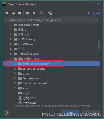 打开kbengine的服务器项目文件夹(资产目录)