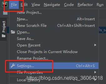 接下来是最关键的一步,给每个项目配置 python interpreter,选择 file->settings