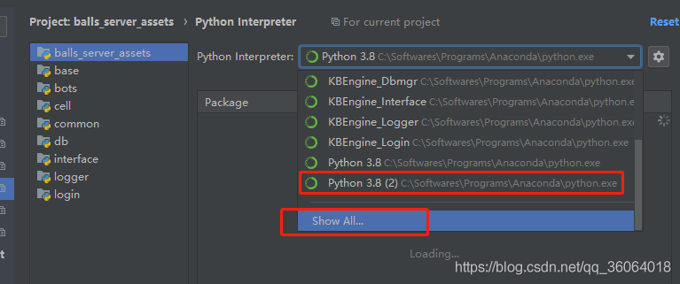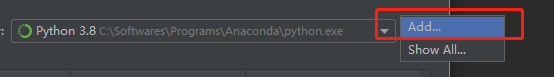 此时,python interpreter窗口中多出来一个 python3.x (2) 的选项,我们选择 show all…