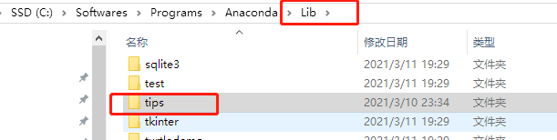 把下载好的 tips 文件夹,拷贝到python安装目录的lib下