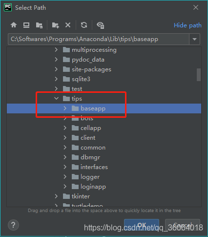 进入到 tips 目录下,选中 baseapp 文件夹,点击确定