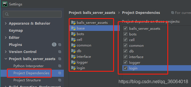 再选择 project dependencies,给每一个项目勾选所有依赖项目,即 base 依赖 cell、common 等项目。