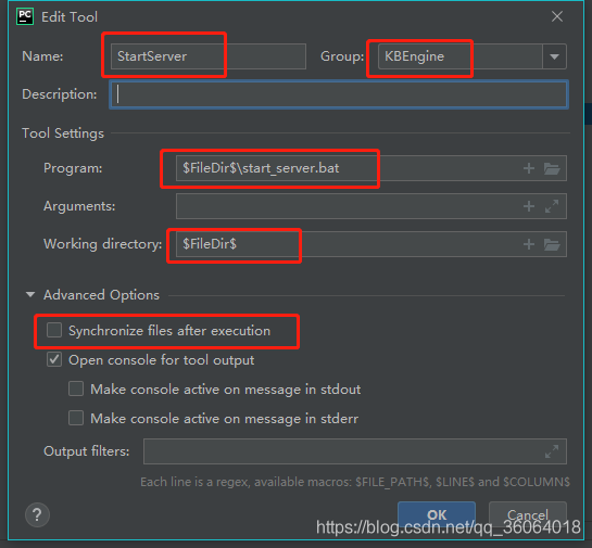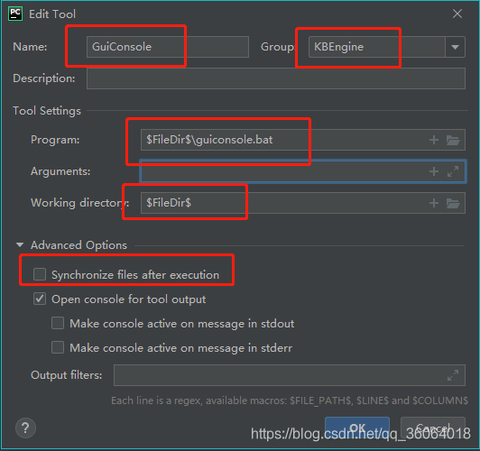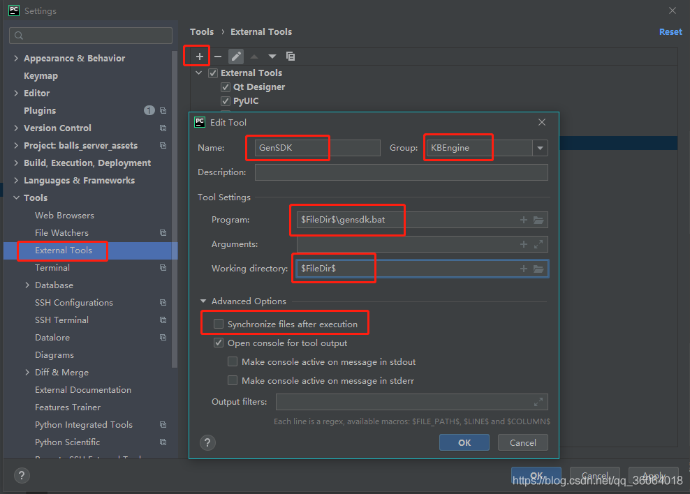 再添加生成客户端插件的工具,切记要取消勾选 synchronize files after execution!否则会导致 bat 文件执行失败