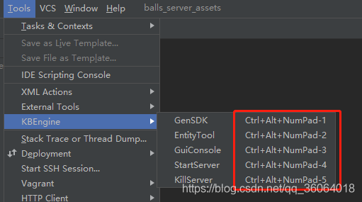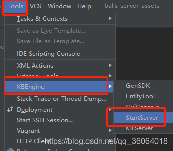 然后点击菜单栏的 tools->kbengine->startserver