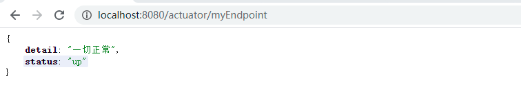 完成了上面的类,启动 springboot 应用,接下来就可以直接通过 http://localhost:8080/actuator/myendpoint 进行访问了: