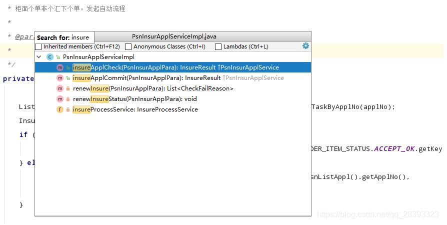 2、然后直接键盘中输入方法名称或者方法包含的字母,会自动模糊匹配相关方法名