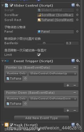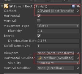 创建物体topanel;添加组件scrollrect,