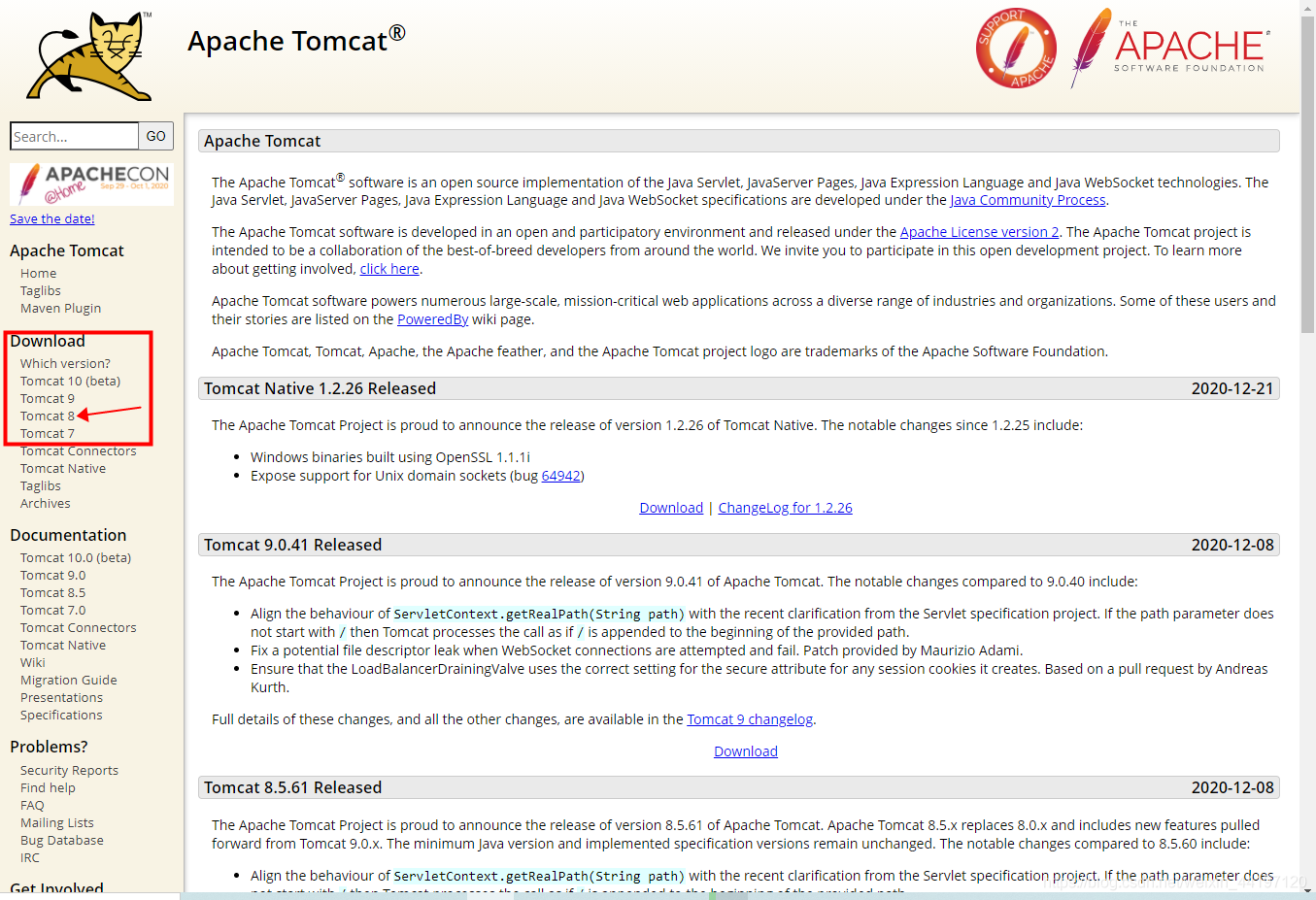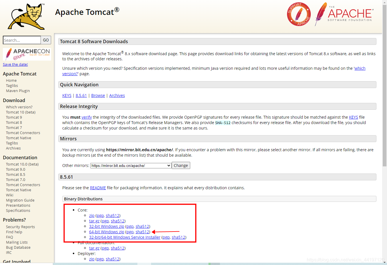 打开,选择要下载的版本,我在这里下载的是tomcat8.5