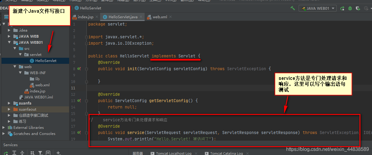 在一般项目开发中一般很少使用servlet接口来实现servlet程序,一般都是使用继承httpservlet类的方式去实现serlvet程序