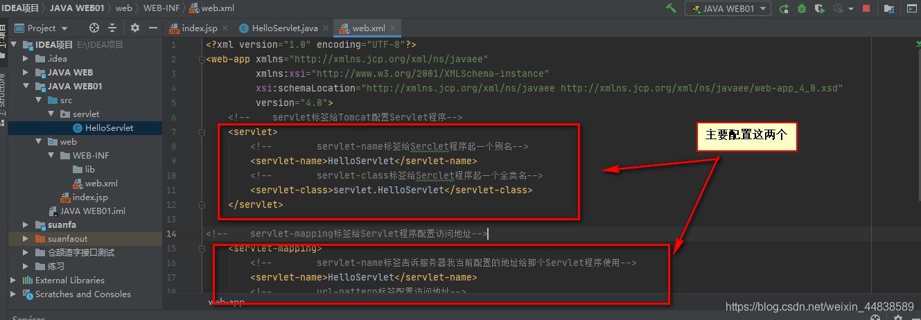 <!-- servlet-name标签告诉服务器我当前配置的地址给那个servlet程序使用-->