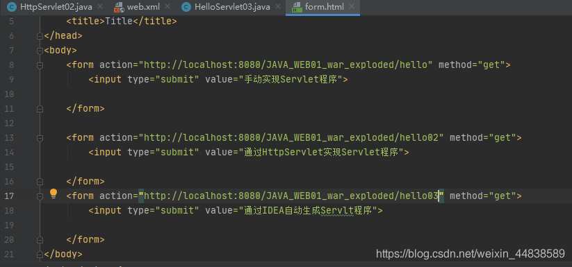 以上就是实现servlet程序的三种方法,大家根据自己的需求去选择,不一定都要掌握,到此这篇关于实现servlet程序的三种方法(小结)的文章就介绍到这了,更多相关实现servlet程序内容请搜索以前的文章或继续浏览下面的相关文章希望大家以后多多支持!
