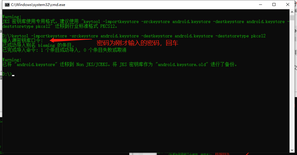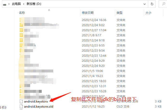 android.keystore是证书文件名称,可修改为自己想设置的文件名称,也可以指定完整文件路径
