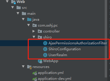 AjaxPermissionsAuthorizationFilter(过滤器)、ShiroConfiguration(配置)、UserRealm(权限验证),在这里面建议小伙伴们先了解下2篇文章:(shiro注解权限控制、UserRealm类重写isPermitted)