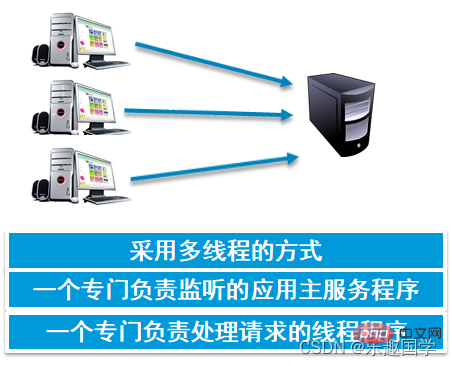 -->解决这个问题的办法是采用多线程的方式,可以在服务器端创建一个专门负责监听的应用主服务程序、一个专门负责响应的线程程序。这样可以利用多线程处理多个请求。