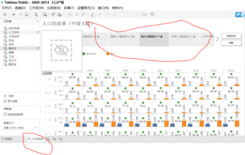 工作薄、仪表盘和故事的数据、图表格式都是完全同步的,在仪表盘上可以调整和点开工作薄上的数据。在故事里也可以看到每个数据的细节。