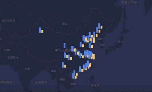经过短时间的等待,选择的数据已经在中国地图指定位置显示出来了。