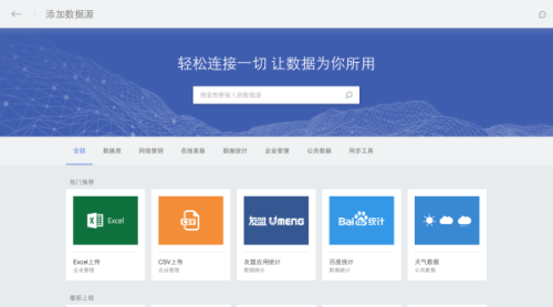 1,首先就是接入我的数据,你可以选择excel文件上传,当然如果你没有自己的数据,也可以直接选择一些公开的数据源,BDP里面的公共数据源还是蛮多的~