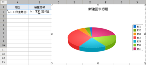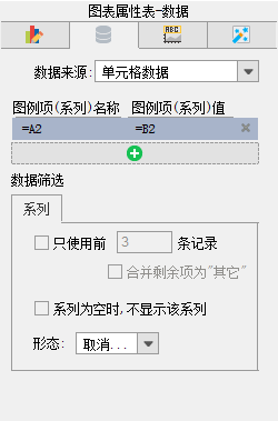 选中悬浮饼图,图表数据来源于单元格数据,选择报表右侧上方的图表属性表-数据,设置如下: