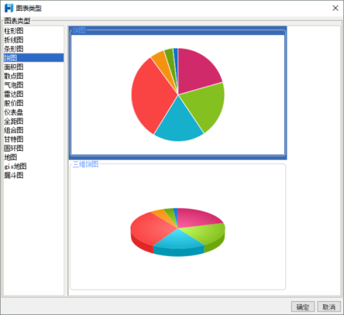 默认的饼图类型是平面饼图。选中饼图,在报表右侧上方的图表属性表中进行修改,选择图表属性表-类型,修改为三维饼图,如下图