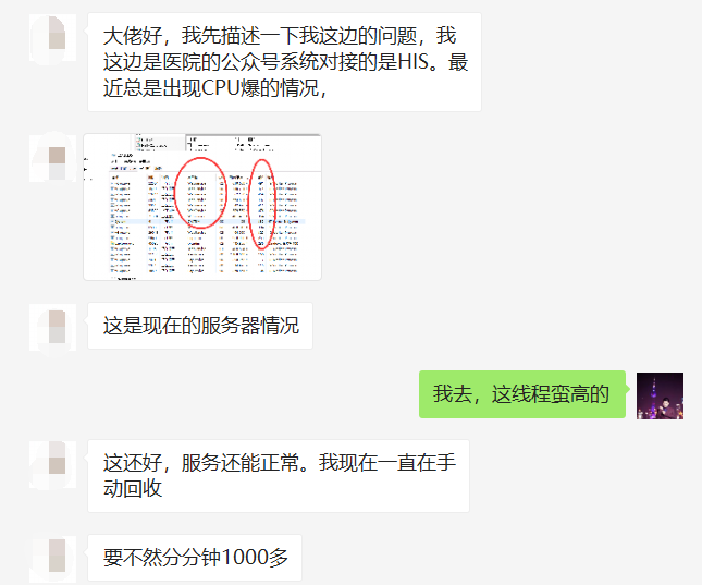 上周四有位朋友加wx咨询他的程序出现 cpu + 线程 双高的情况,希望我能帮忙排查下,如下图: