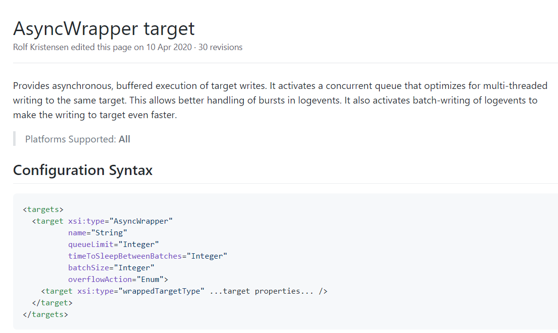 一个高效的日志系统,走的应该是 专有线程 + 日志缓冲队列 的路子,找了下 nlog 的资料,嘿,nlog 还真提供了这种方案。