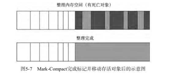 为了解决 mark-sweep 的内存碎片问题,mark-compact 被提出来。mark-compact是标记整理的意思,是在 mark-sweep 的基础上演进而来的。它们的差别在于对象在标记为死亡后,在整理过程中,将活着的对象往一端移动,移动完成后,直接清理掉边界外的内存。