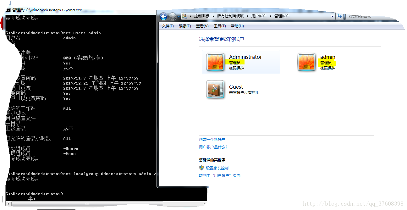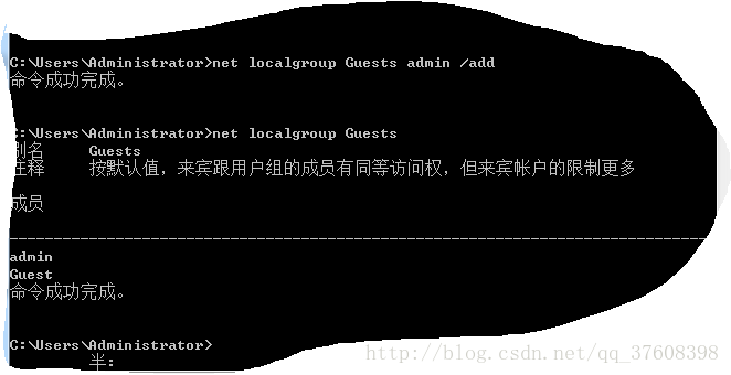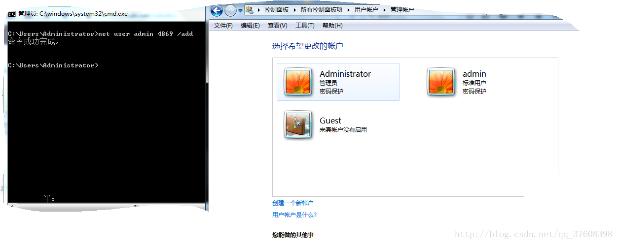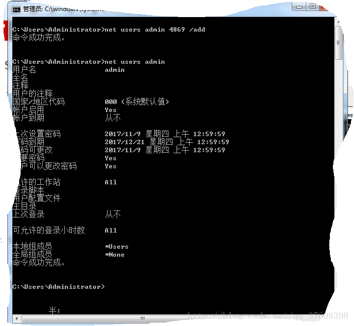 注意:这里如果不想创建的用户有密码可以用net users admin /add