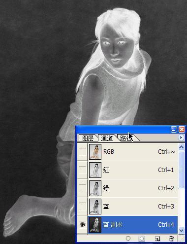 2、复制蓝色通道(拖拽蓝色通道到下方的复制通道按钮上),生成新通道“蓝副本”(图2)。