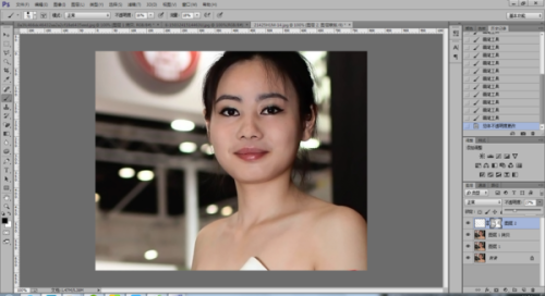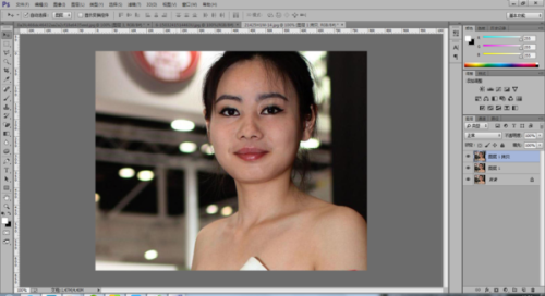 1、打开PS软件,置入要磨皮的人物图像并Ctrl+J复制一层;