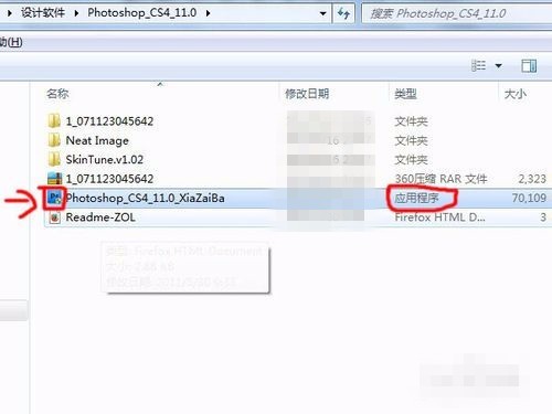 【2】打开解压后的文件夹,里面有好多文件,别随便乱动里面的文件,找到带有PS图标的应用程序,双击安装即可。如下图所示: