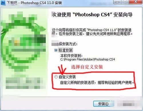 注意事项:安装的时候最好别选标准安装,因为有很多捆绑软件,而且会让你的C盘空间越来越小。PhotoshopCS2、CS3、CS4等各有优缺点,看个人喜好。