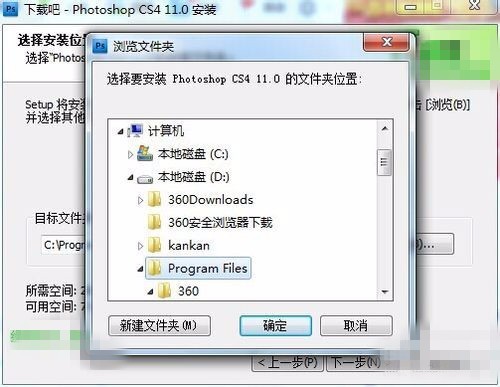 【5】选择自定义安装之后点击安装,会出现下图,这是让你选择把Photoshop安装在哪里。应用软件我都是安装在D盘。点击“浏览”按钮选择D盘的一个文件夹安装。D盘的文件夹可以自己新建一个。