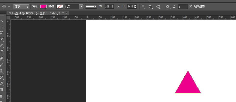 1、打开ps,新建一个空白文档,在左侧工具栏中选择“多边形工具”,属性栏中,设置变数为“3”