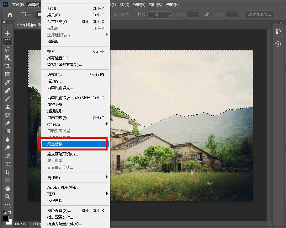 点击编辑选项,选择天空替换选项。