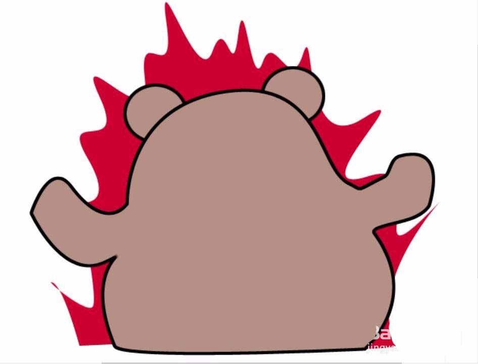 2、接下来就开始用钢笔来描绘出整个生气熊的身体,从手到到肚子这样的一个封闭的身体,还有两只圆圆的耳朵,一左一右的耳朵图层要在身体的后面,从而让整个身体融为一体。