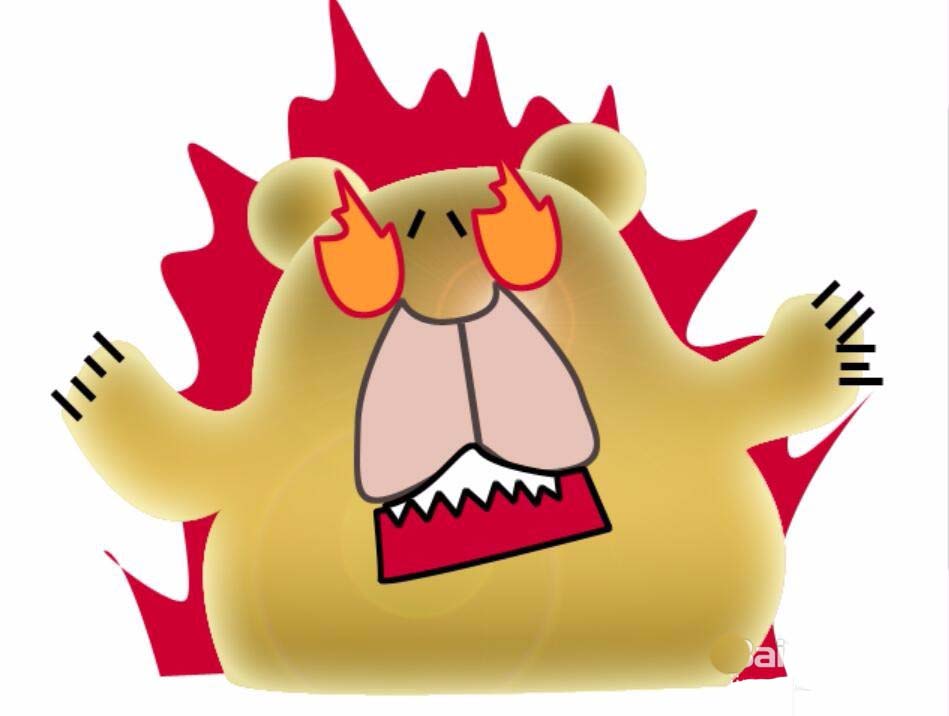 6、换一种风格来呈现这个表情,我们用三色渐变来填充生气熊,再使用一下图层效果中的内发光,从而让这个表情又有了最新的一种样式!