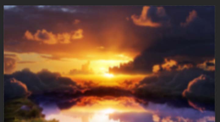 1、首先找一张风景画,然后执行滤镜->模糊->高斯模糊,设置合适的像素,模糊效果如图。