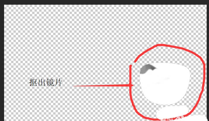 3、用钢笔工具把镜片边缘选出,按下ctrl+enter键将路径转换为选区,然后ctrl+j复制选区内容到新图层,并按下ctrl+shift+[ 置于最顶层,单独查看该图层如图。